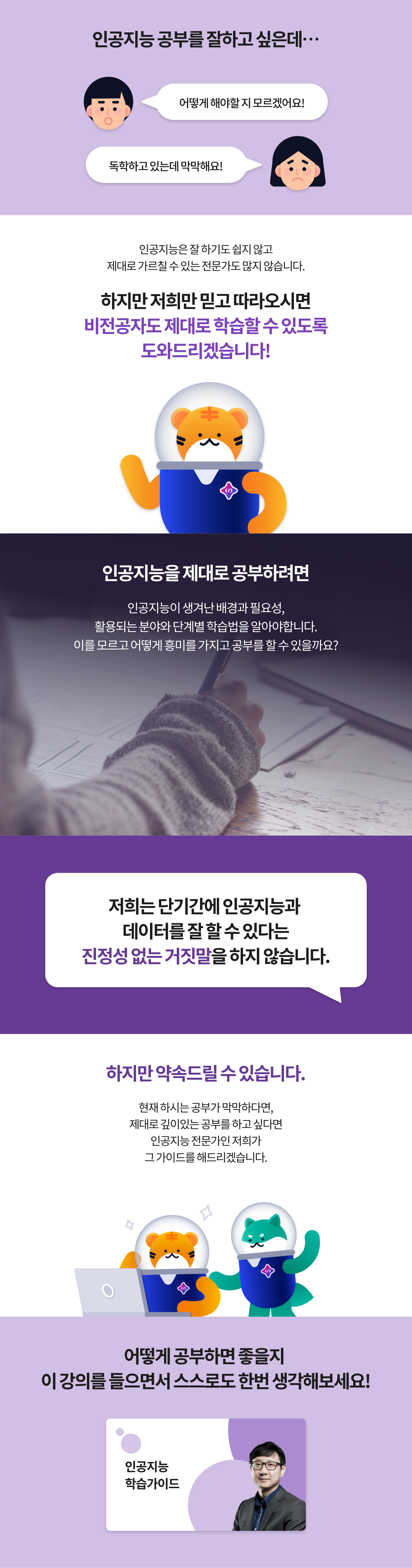 인공지능이 어떤 것인지! 우리는 어떻게 인공지능을 학습해야 하는지! 학습할 수 있는 강의입니다 |