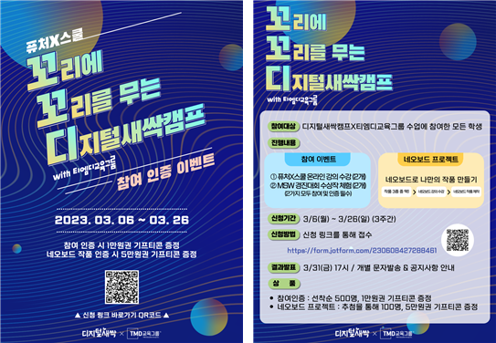 제목 | [디지털새싹X티엠디교육그룹] 퓨처엑스스쿨 참여 이벤트 신청 안내 | ||||||||||||||||