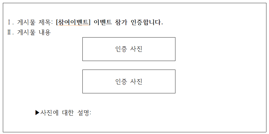 게시물은 위 양식대로 작성해주시면 됩니다~! 참가하는 이벤트 별 게시물 제목을 잘 확인해주세요~!