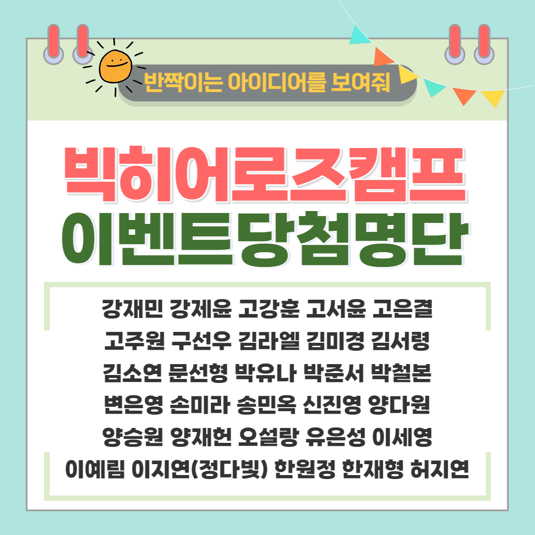 빅히어로즈캠프 후기 이벤트 당첨을 축하드립니다!