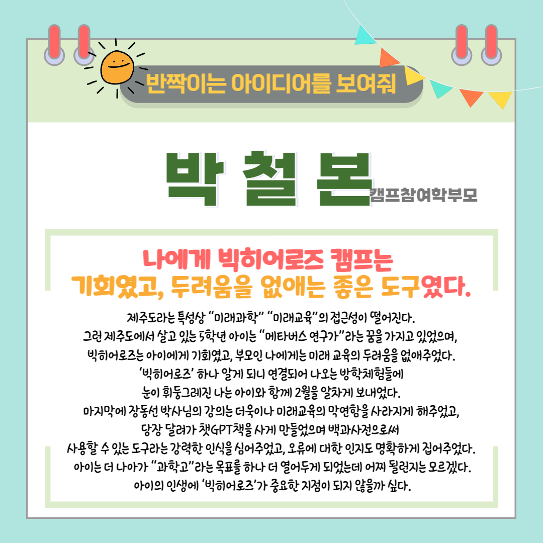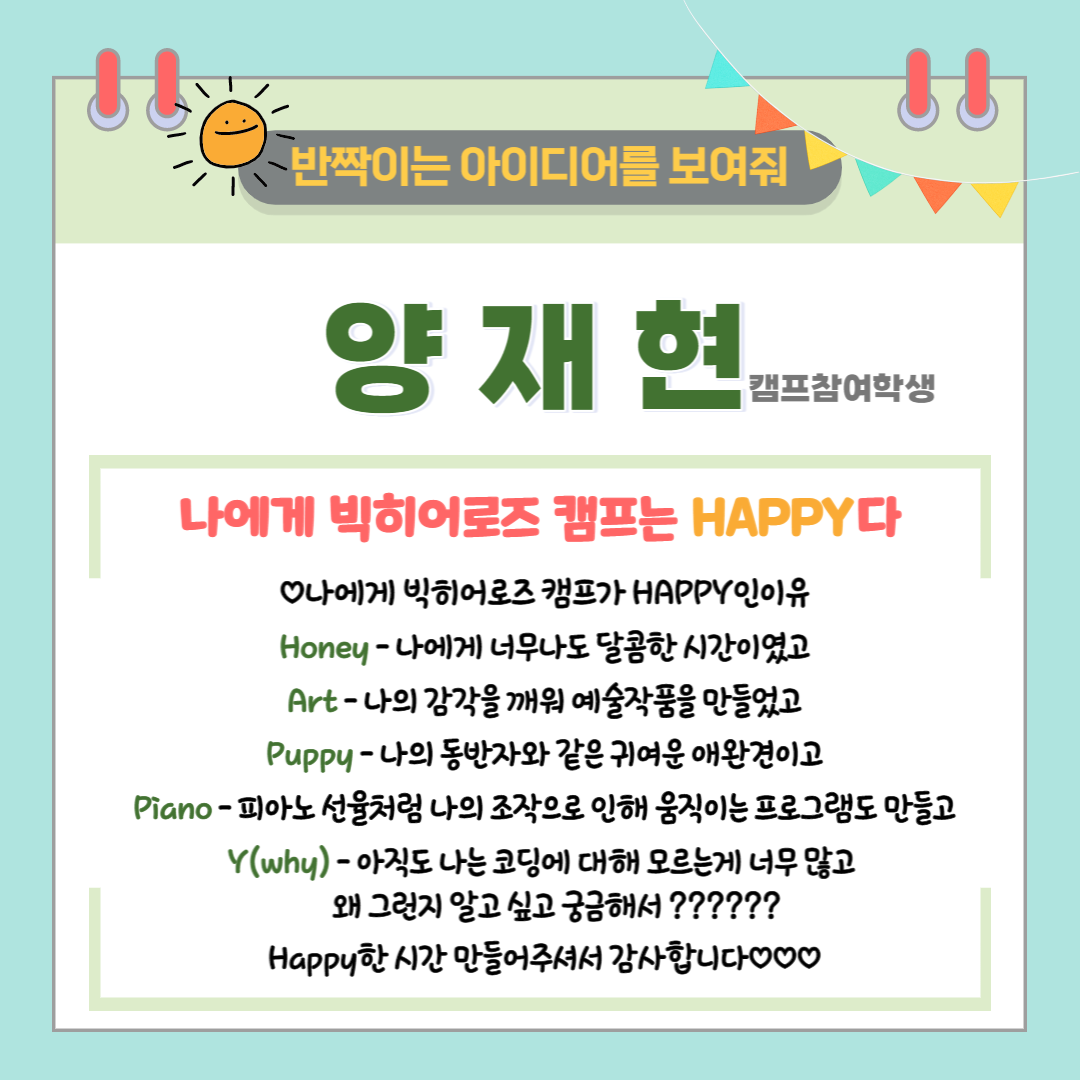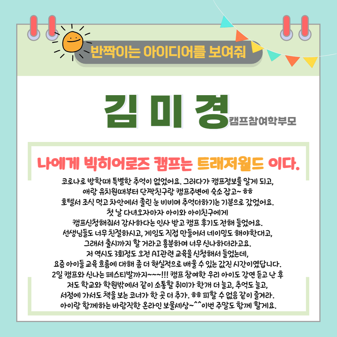 특별히 빅히어로즈 캠프 후기를 열심히 작성해주신 세 분을 뽑아보았습니다!